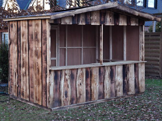 Wandstärke: 15mm (Rindenbretter) und 4mm Tischlerplatte 3-fach verleimt.